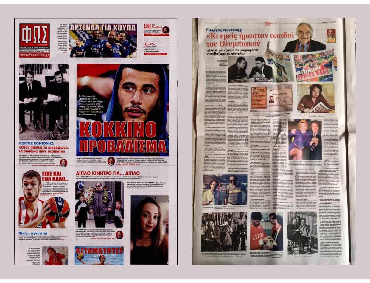 Σήμερα στην μεγαλύτερη και στην καλύτερη αθλητική εφημερίδα το ΦΩΣ ΤΩΝ ΣΠΟΡ στη συνέντευξη που έδωσα στον φίλο συνάδελφο και σπεσιαλίστα στο είδος Θέμη Σινάνογλου μιλάω για το τότε και το σήμερα.