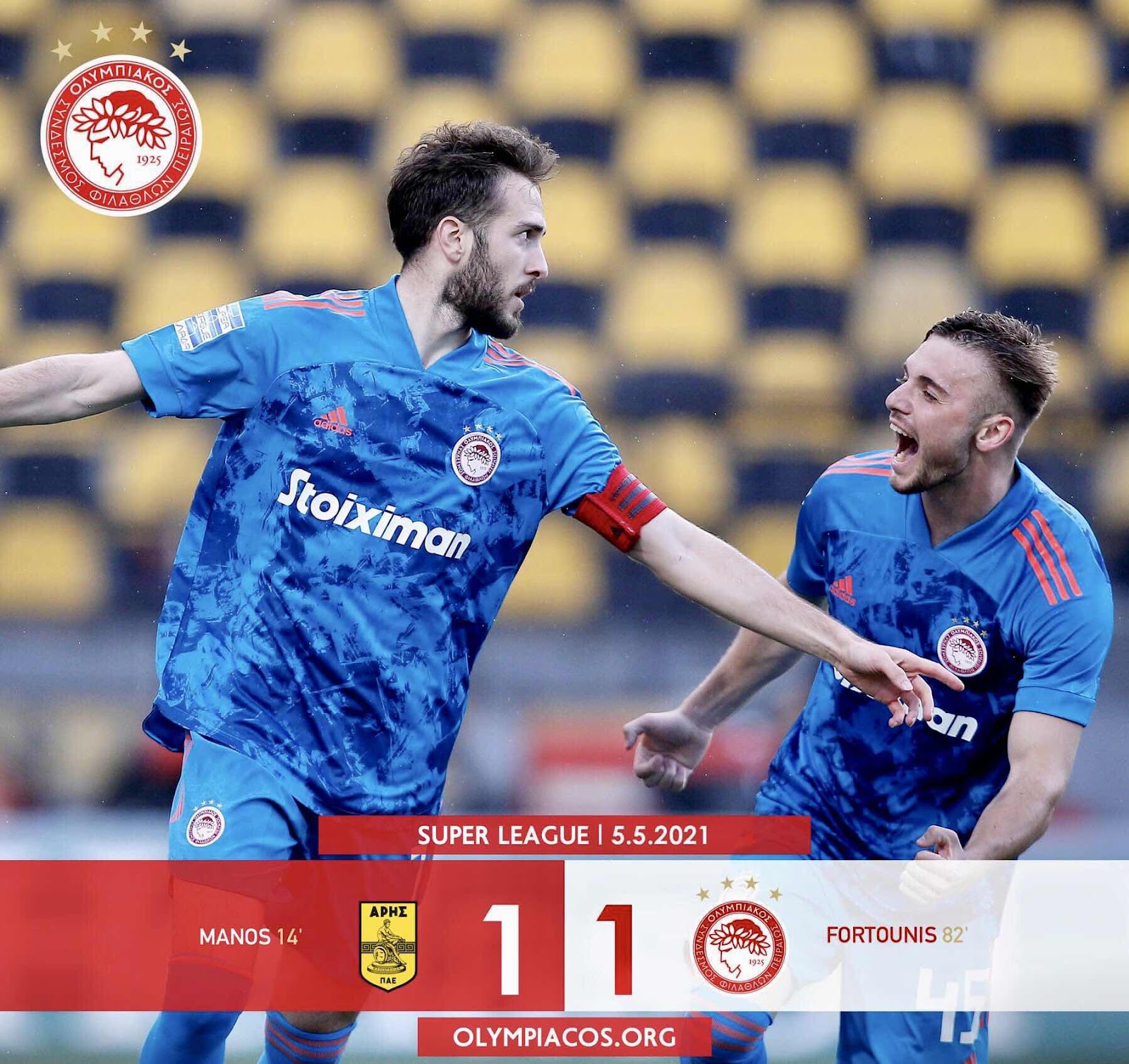 Ήταν το 82 λεπτό όταν με υποδειγματικό τρόπο ο Φορτούνης «καταβασε» την μπάλα και με ανα «γλυκό» πλασέ ισοφάρισε σε 1-1! Ένα εντυπωσιακό γκόλ όπως όλη τόνισαν. Στο γκόλ του Ολυμπιακού η άμυνα του Ολυμπιακού «πιάστηκε» στον ύπνο!