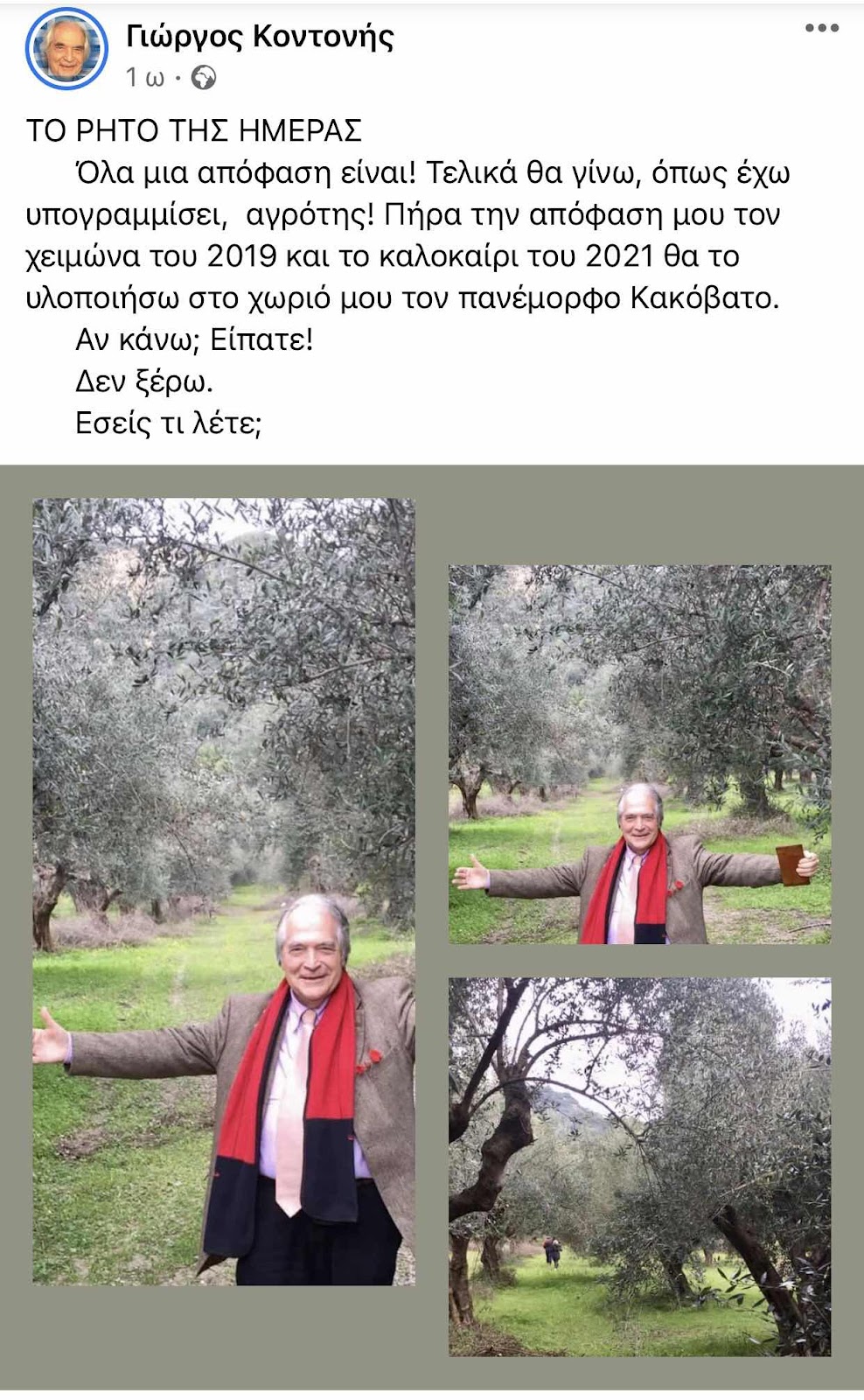 Όμως την απόφαση μου που είναι οριστική την έχω πάρει. Και σας διαβεβαιώ δεν είναι της στιγμής! Χρόνια τώρα το ήθελα! Έτσι αποφάσισα να γίνω αγρότης!