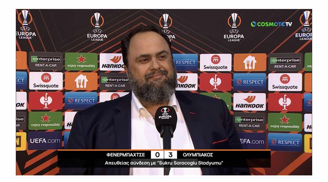 Αμέσως μετά την νίκη θρίαμβο του Ολυμπιακού στην Πόλη με 3-0 επι της πρωτοπόρου του τουρκικού πρωταθλήματος της Φενέρμπαχτσε, ο ιδιοκτήτης και πρόεδρος του Θρύλου ο μεγαλοεφοπλιστής και ο μεγαλοεπιχηρηματίας ο Ευάγγελος Μαρινάκης δήλωσε ΕΛΛΑΔΑ-ΘΡΥΛΟΣ ΘΡΗΣΚΕΙΑ ΜΕΣΑ ΣΤΗΝ ΤΟΥΡΚΙΑ. Μάλιστα ο καλός μου φίλος ο Ευάγγελος Μαρινάκης τόνισε τουλάχιστο δυο φορές την λέξη «μέσα στην Πόλη μας».