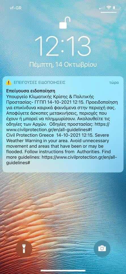 Προσοχή λοιπόν στο μήνυμα, επείγουσα ειδοποίηση, του υπουργείου Κλιματικής Κρίσης και Πολιτικής Προστασίας.