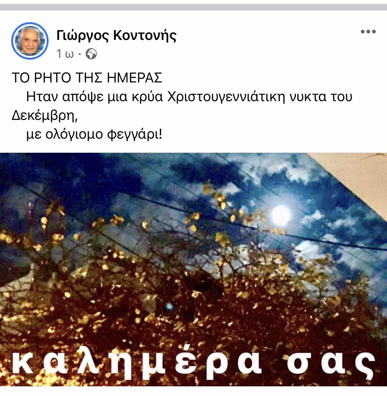 Ήταν μια κρύα βραδιά. Άλλωστε είμαστε στην καρδιά του χειμώνα. Ένα Χριστουγεννιάτικο κρύο βράδυ του Δεκέμβρη με ολόγιομο φεγγάρι όμως…