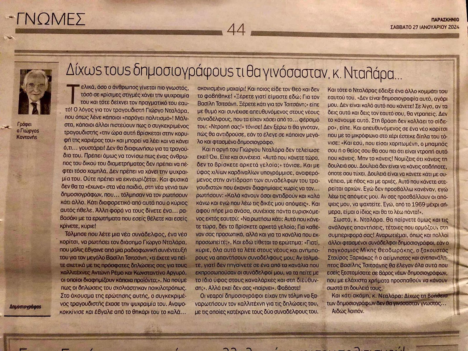 Και ακόμη κ. Νταλάρα. Δίχως την βοήθεια των δημοσιογράφων δεν θα γινόσαστε γνωστός…