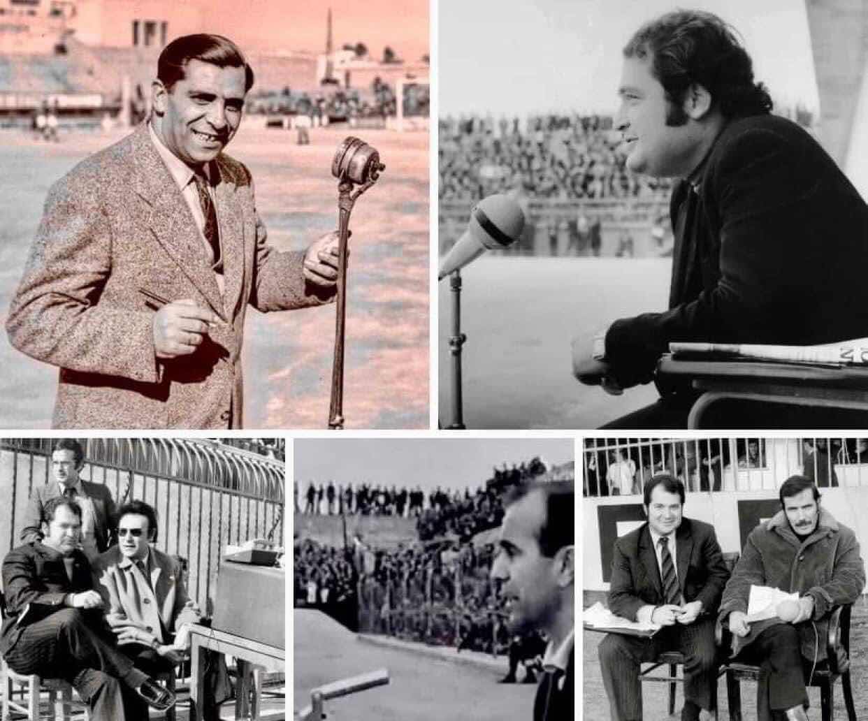 Αριστερά ο πρώτος των πρώτων. Ο κορυφαίος. Ο δάσκαλος όλων μας. Ο αείμνηστος Μιχάλης Γιαννακάκος που οι παλαιοί θυμούνται και καλό είναι οι νέοι να μαθαίνουν. Δίπλα η αφεντιά μου στο γήπεδο της Νέας Σμύρνης για την περιγραφή του αγώνα Πανιωνίου Ολυμπιακού 0-3! Στην κάτω σειρά είμαστε δίπλα δίπλα το Ραδιόφωνο με την Τηλεόραση. Ο καλύτερος σπορκάστερ Γιαννης Διακογιάννης με τον Γιώργο Κοντονή λίγο πριν αρχίσουμε την μετάδοση του αγώνα Παναθηναϊκού Ολυμπιακού! Δίπλα ο καταπληκτικός Γιάννης Λογοθέτης την ώρα που περιγράφει το ντερμπυ της Θεσσαλονίκης Άρη ΠΑΟΚ! Και δεξιά ο πραγματικά υπέροχος όχι μόνο ως σεναριογράφος συγγραφέας αλλά και ως σπίκερ ο Νίκος Φώσκολος μαζί μου στην Ραδιοφωνική περιγραφή του ντερμπυ των αιωνίων στη Λεωφόρο.