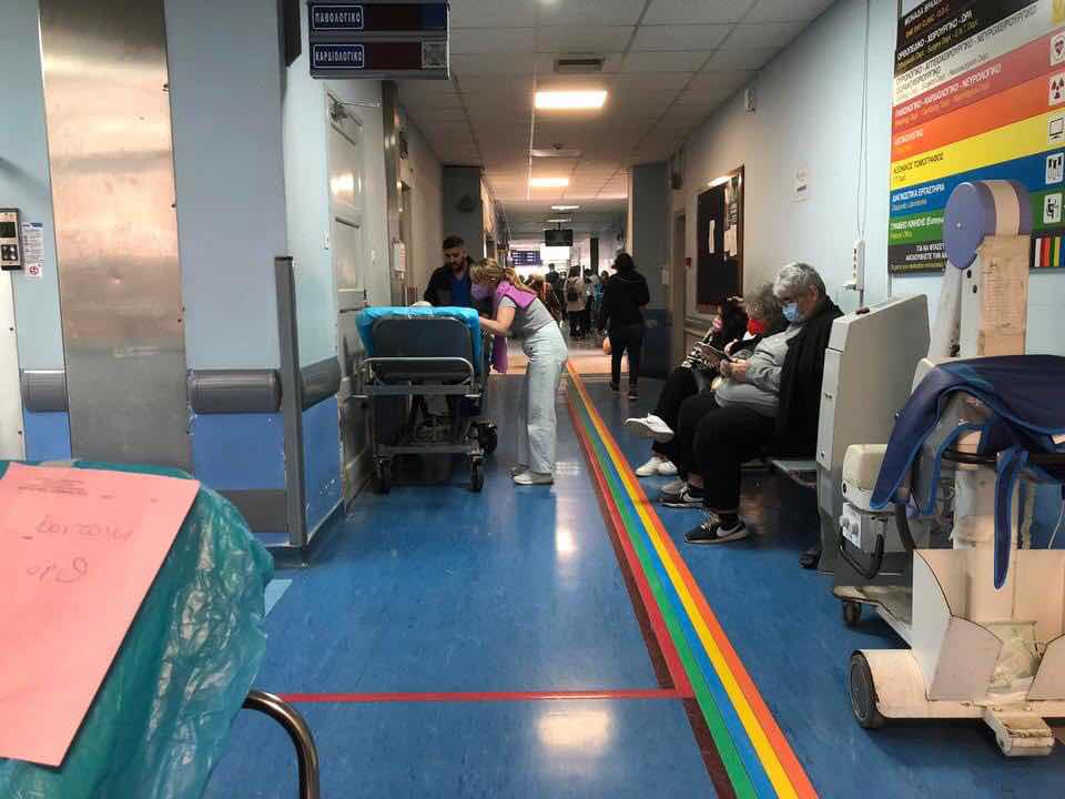 Οι φωνές των ασθενών δίνουν την ένταση και αίσθηση του πόνου! Οι γιατροί και οι τραυματιοφορείς λίγοι μπροστά στο κύμα στο…τσουνάμι των ασθενειών! Οι εξυπηρετήσεις με σειρά προτεραιότητας και ανάλογα με το βαθμό της επικινδυνότητας κινούνται σε…ρυθμό χελώνας!