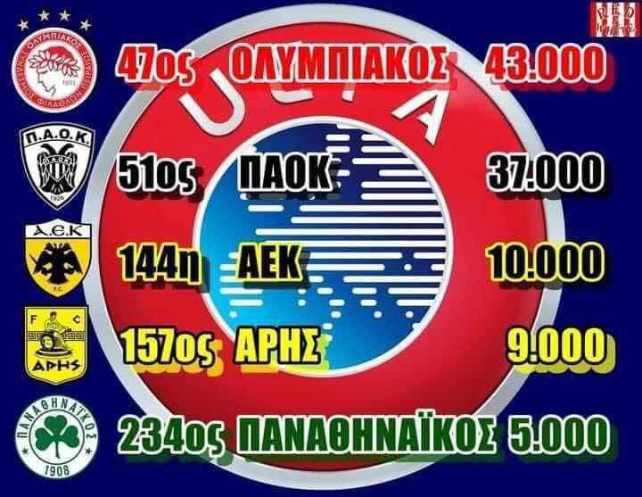Θα προσθέσω πως η βαθμολογία που δεν…σηκώνει αμφισβήτηση από κανέναν, είναι η επίσημη της Ευρωπαϊκής Ποδοσφαιρικής Ένωσης! Της UEFA.