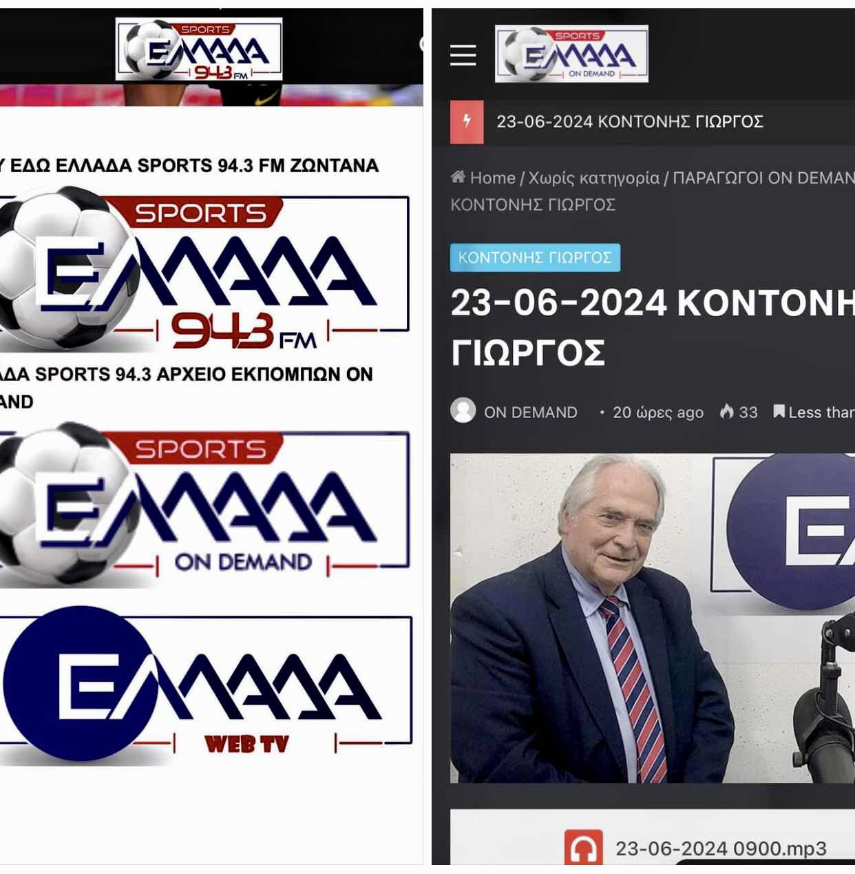 Εάν κάποιος θέλει να ξανακούσει μια εκπομπή ή για κάποιο λόγο την…έχασε κανένα πρόβλημα! Οι υπεύθυνοι του Σταθμού Elladafm Hellasfm και Ellada Sports 94,3 που ανεβαίνει διαρκώς και ο κόσμος τον έχει αγκαλιάσει, έχουν φροντίσει και οι εκπομπές «ανεβαίνουν συο σάιτ του σταθμούς, λίγα λεπτά μετά το σήμα τέλους!
