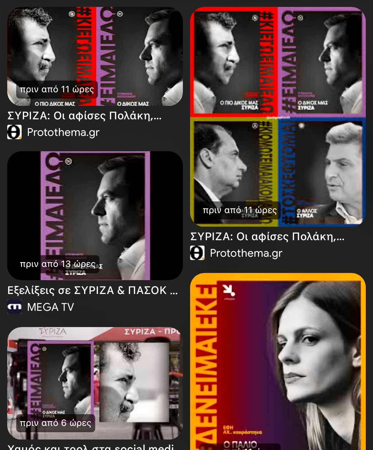 ΠΛΑΚΑ ΕΧΟΥΝ ΟΙ…ΑΦΙΣΕΣ ΤΟΥΣ!Αυτή η μωβ αφίσα του Κασσελάκη με το ΕΙΜΑΙ ΕΔΩ και το Ο ΔΙΚΟΣ ΜΑΣ ΣΥΡΙΖΑ πυροδότησε τους πάντες! Σχεδόν όλους τους συντρόφουςΣΥΡΙΖΑίους! Έτσι απάντησαν στον έκπτωτο πρόεδρο Στέφανο Κασσελάκη με τον ίδιο τρόπο. Δείτε και διαβάστε.«#κι εγώ είμαι εδώ» με μότο «ο πιο δικός μας ΣΥΡΙΖΑ» έγραψε για τον Παύλο Πολάκη, «#κι όμως είμαι ακόμα εδώ» με μότο «κάποιος ΣΥΡΙΖΑ» έγραψε για τον Χρήστο Σπίρτζη, «#το σκέφτομαι» με μότο «ο άλλος ΣΥΡΙΖΑ» έγραψε για τον Νίκο Φαραντούρη και «#δεν είμαι εκεί» με μότο «ο παλιοσυριζα» έγραψε για την Έφη Αχτσιόγλου.Και φυσικά όλα ήταν επιτυχημένα!«#κι εγώ είμαι εδώ», «#κι όμως είμαι ακόμα εδώ» «#το σκέφτομαι» και «#δεν είμαι εκεί» τα hashtag-απάντηση στον έκπτωτο πρόεδρο του ΣΥΡΙΖΑ!