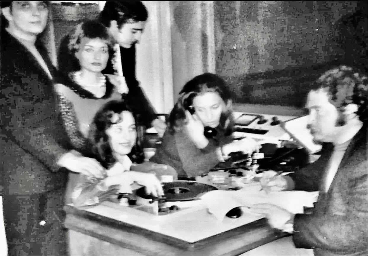 Στην φωτογραφία (άλλη μια ιστορική) που σήμερα δημοσιεύω είναι. Από τα αριστερά. Ο Κίμων Βρεττός. Δίπλα του η Ιλεάνα Οικονομάκη. Ακολουθεί ο τεχνικός μας ο Σωτήρης Κόρδας. Κάτω αριστερά η Βέρα Στρατάκου και η Ντοζια. Δεξιά της φωτογραφίας η αφεντιά μου την ώρα που αναλύω την ροή της εκπομπής.